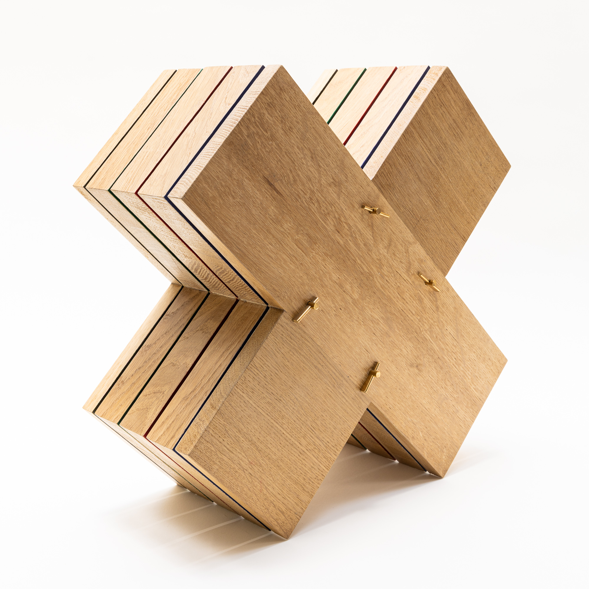 Paul Machiels – 2025 – pièce unique – chêne, acrylique et bronze – 42 x 42 x 18 cm