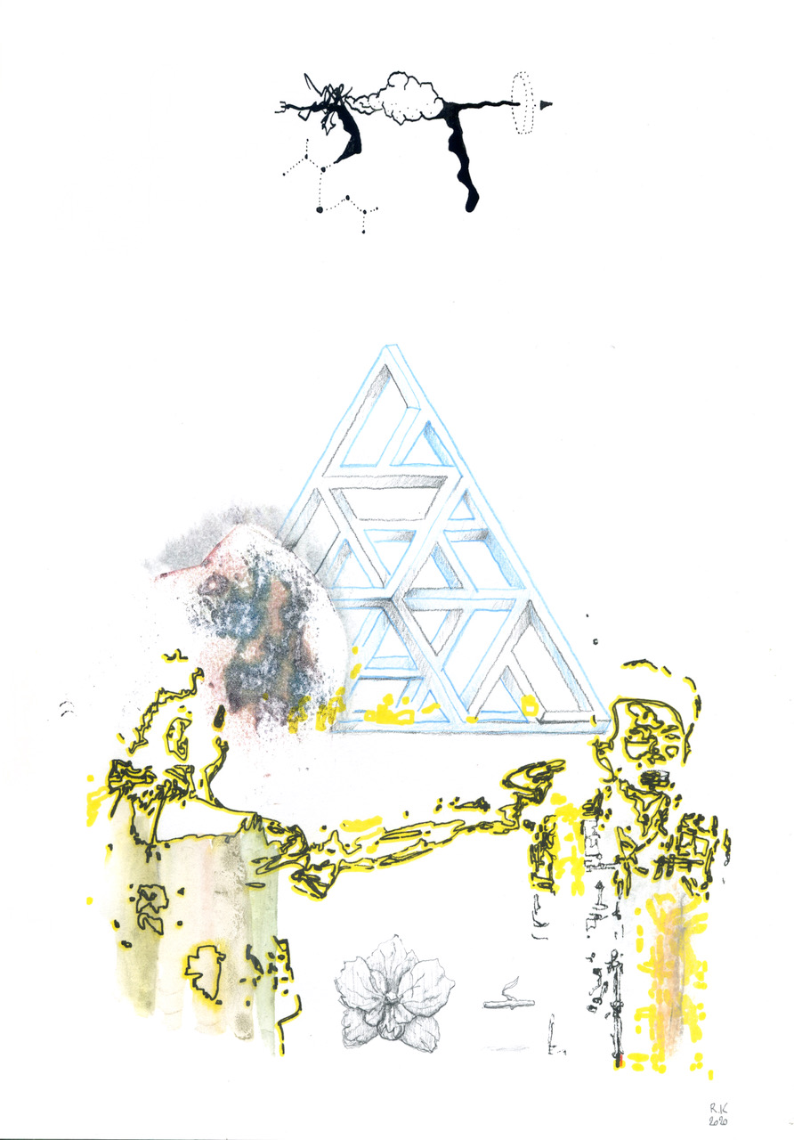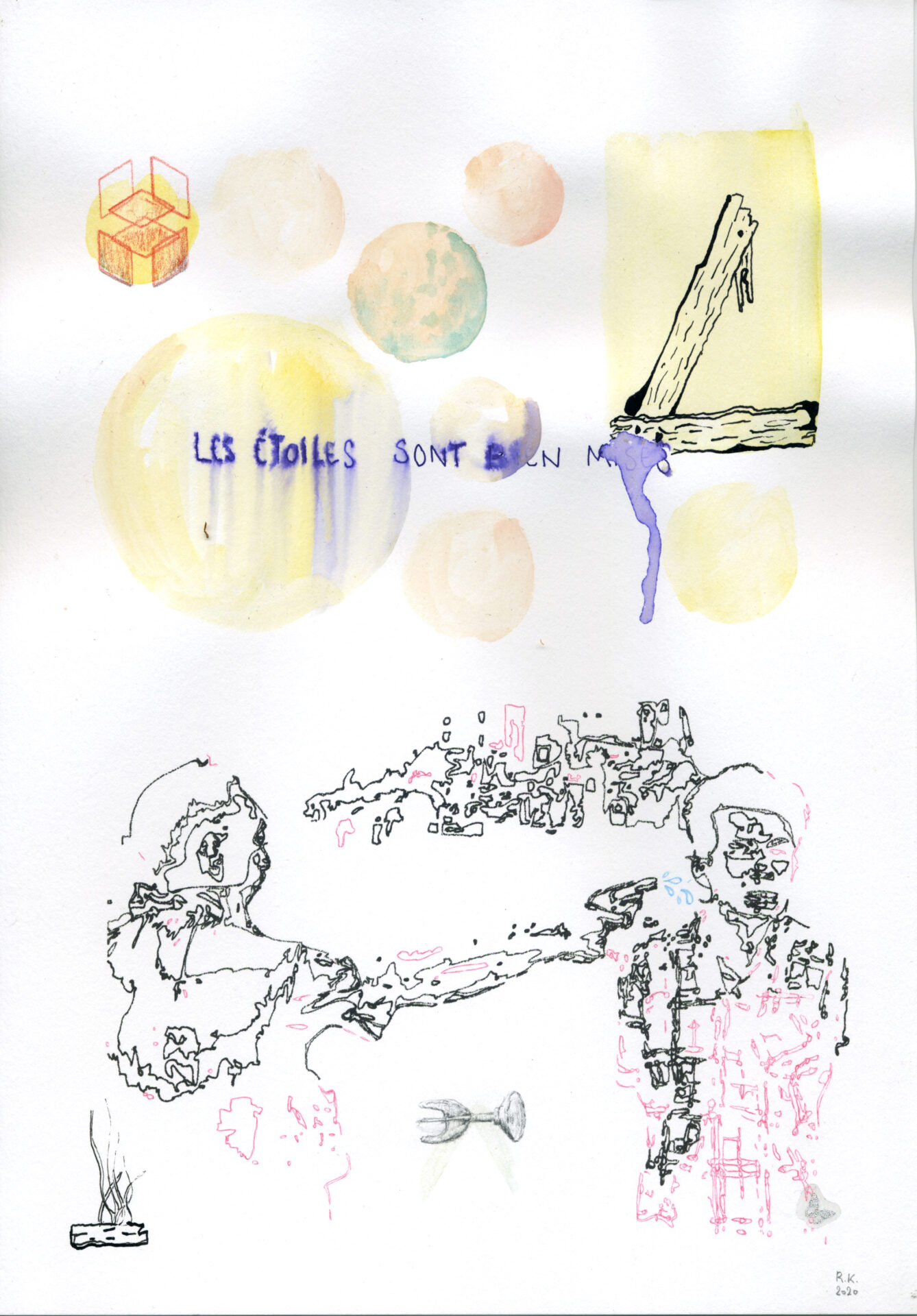 Raphael Kirkove partage sa création plastique entre le dessin, la peinture, le collage et l’image numérique.